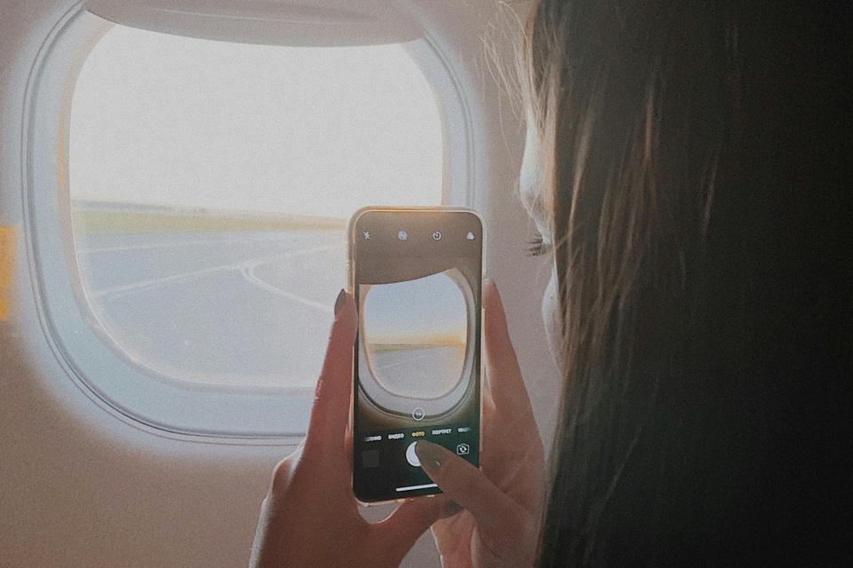 Du khách chụp ảnh từ cửa sổ máy bay. Ảnh: Alina Matveycheva/Pexels. |